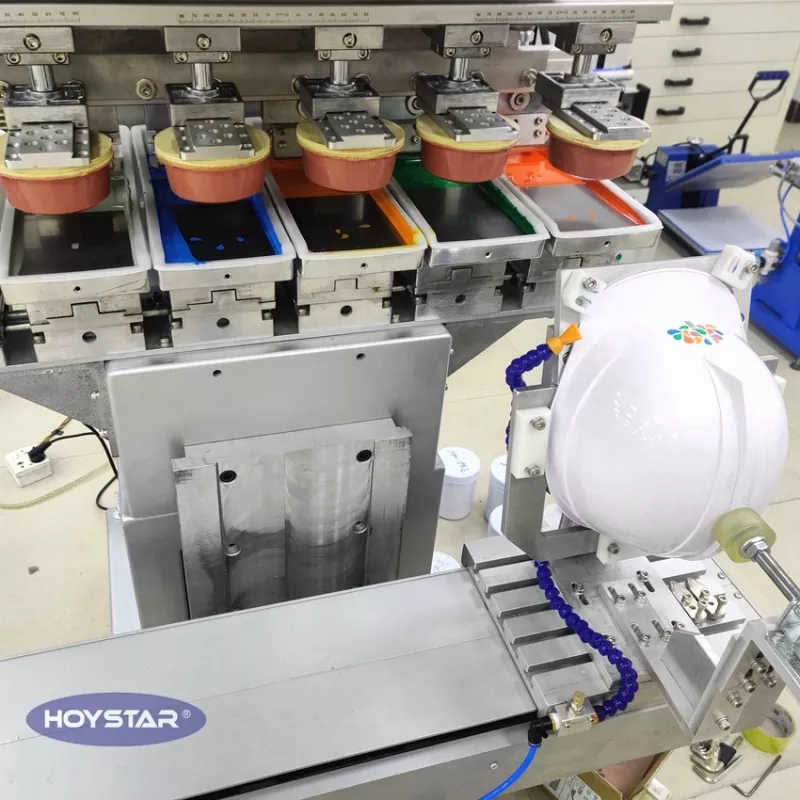 باعتبارنا الشركة المصنعة المحترفة في الصين، نود أن نقدم لك آلة طباعة وسادة خوذة الأمان HOYSTAR ذات 6 ألوان عالية الكفاءة، والتي تم تصميمها خصيصًا للطباعة على خوذة الأمان. تم تصميمها لإكمال طباعة 6 ألوان في دورة إنتاج واحدة، دون الحاجة إلى الإعداد المتكرر وتقليل وقت الإنتاج بشكل كبير. وبعيدًا عن القبعات الصلبة، يتيح تصميمها المرن أيضًا الطباعة السلسة على مجموعة متنوعة من المنتجات ذات الأشكال المماثلة، مثل الخوذات الواقية، وأغلفة الأدوات البلاستيكية، والملحقات الصغيرة ذات الغلاف الصلب.