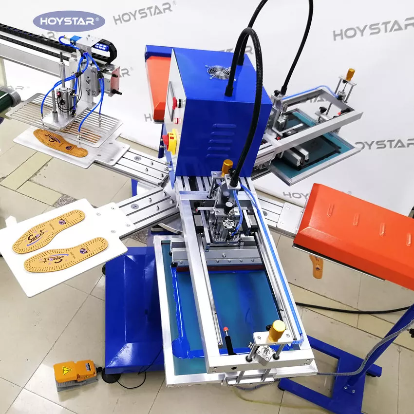 باعتبارنا الشركة المصنعة المحترفة في الصين، نود أن نقدم لك آلة طباعة الشاشة الملونة الأوتوماتيكية عالية الكفاءة لنعل الحذاء. مع قدرة إنتاجية تصل إلى 1000 قطعة في الساعة، تم تصميم هذه الآلة لطباعة الملصقات أو الملصقات على المنتج. إنها تتميز بطاولة عمل دوارة من أجل التحميل والتفريغ المريح.