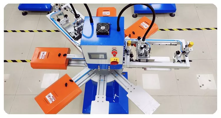 7. تشتمل الآلة على 8 محطات عمل إجمالاً: 2 للطباعة، 3 للتجفيف، و3 للتحميل/التفريغ.