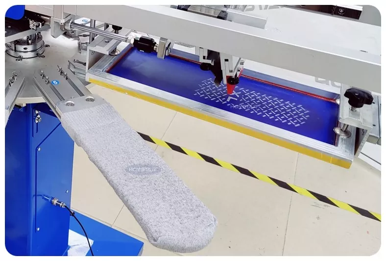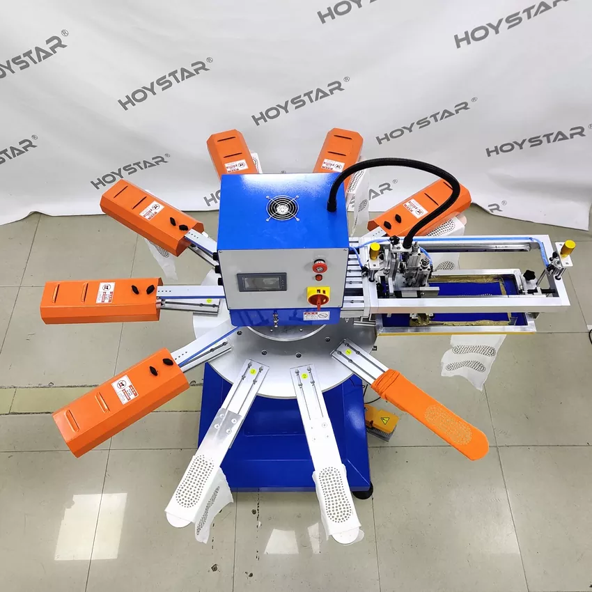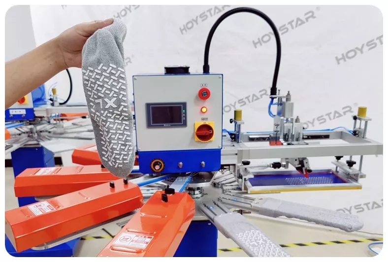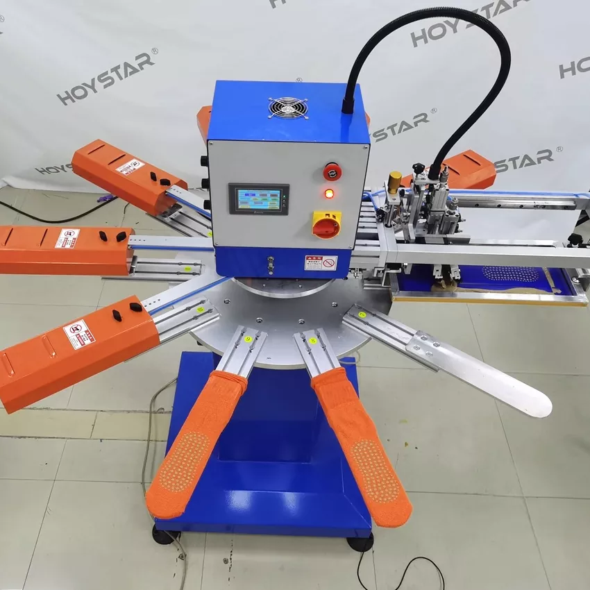 باعتبارنا الشركة المصنعة المحترفة في الصين، نود أن نقدم لك آلة طباعة الشاشة HOYSTAR عالية السرعة للجوارب. تعتمد أجهزتنا التحكم PLC وشاشة اللمس، وتستخدم بشكل رئيسي لطباعة أنواع مختلفة من الجوارب. يمكن للآلة الطباعة على باطن وكعب الجوارب وهي مجهزة بفرن تجفيف يمكنه تجفيف السيليكون والحبر جيدًا.